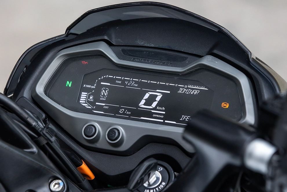 A Dominar NS200 conta com freio ABS de duplo canal, sistema avançado de freios que evita o bloqueio das rodas durante frenagens intensas, assegurando estabilidade e segurança.